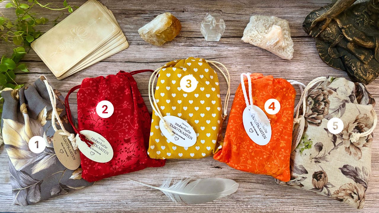 Aufbewahrung: für dein Deck kannst du ein schönes Stoffbeutelchen auswählen, in welchem es sicher aufbewahrt werden kann